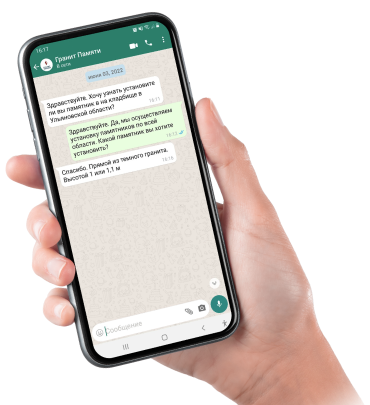 Менеджер контакт-центраНаш менеджер в самое ближайшее время свяжется с вами для уточнения деталей и рассчитает предварительную стоимость памятника по вашим ответам.