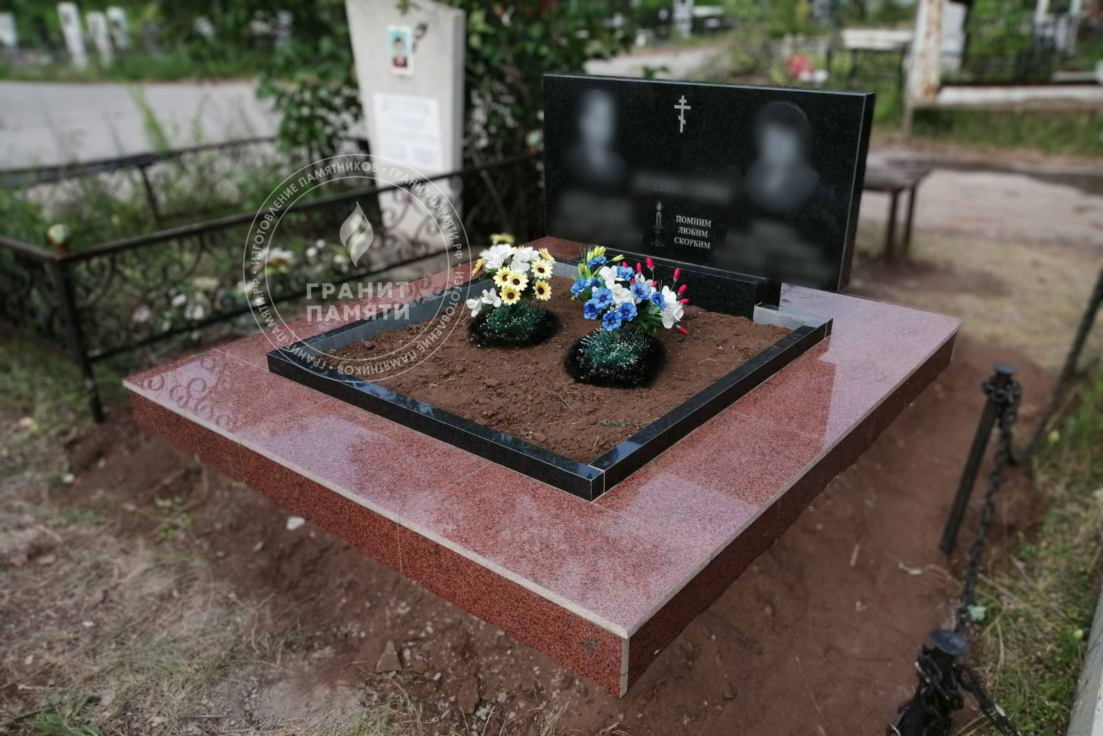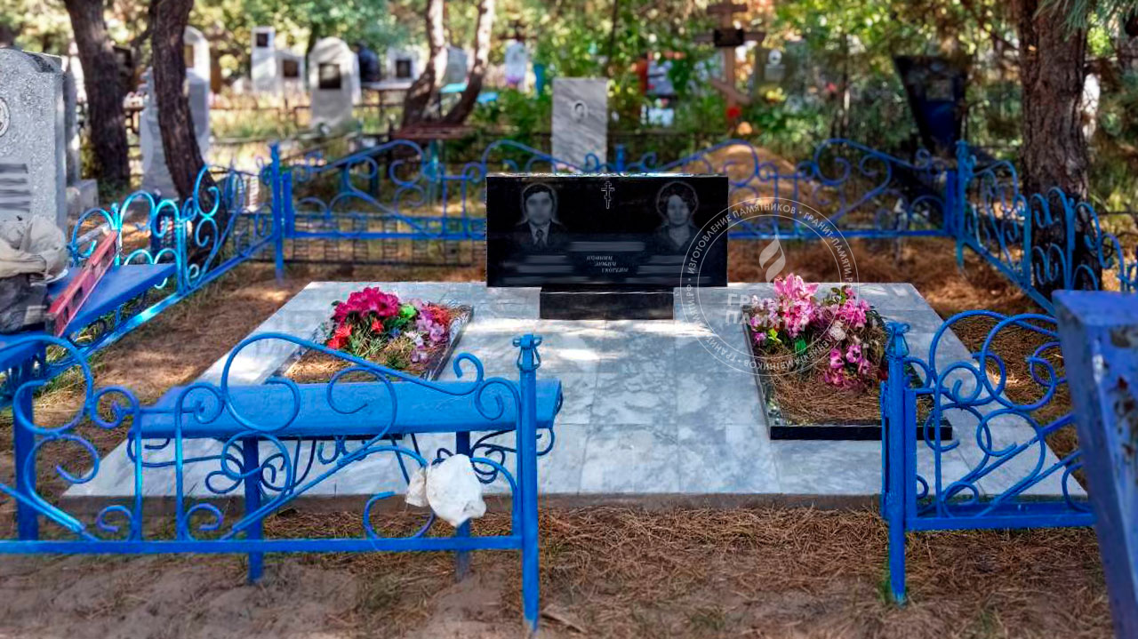 - Доступен в разных комплектациях: с цветниками, с надгробными плитами и т.д.